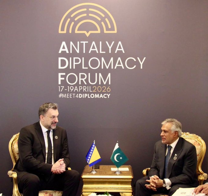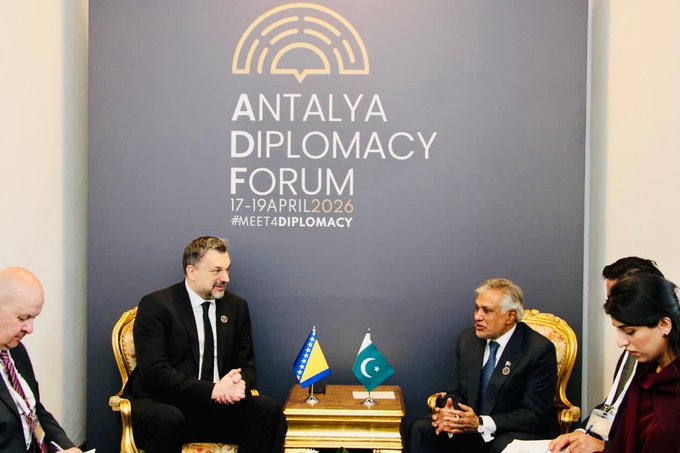 ANTALYA, Friday, April 17, 2026 (WNP): Deputy Prime Minister and Foreign Minister Ishaq Dar on Friday said Pakistan and Bosnia and Herzegovina share deep-rooted and historic ties, reaffirming commitment to further strengthen bilateral relations.