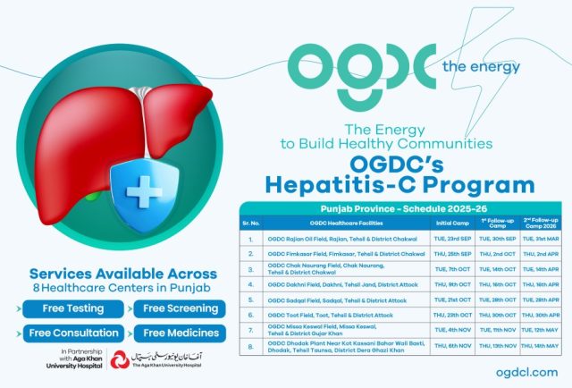 ISLAMABAD, Monday, September 22, 2025 (WNP): The Oil and Gas Development Company Limited (OGDCL) has announced a major initiative to eliminate Hepatitis C by organizing free screening and treatment camps across Punjab and Sindh.