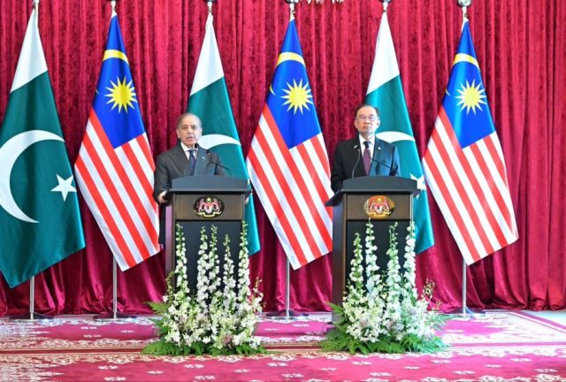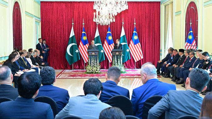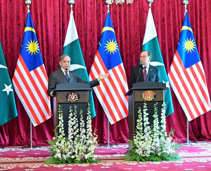 Photos Prime Minister Shehbaz Sharif, Malaysian Premier Anwar Ibrahim deliver joint press statement in Putrajaya October 6, 2025 34 FacebookTwitterPinterestWhatsApp