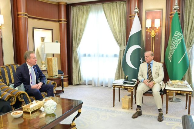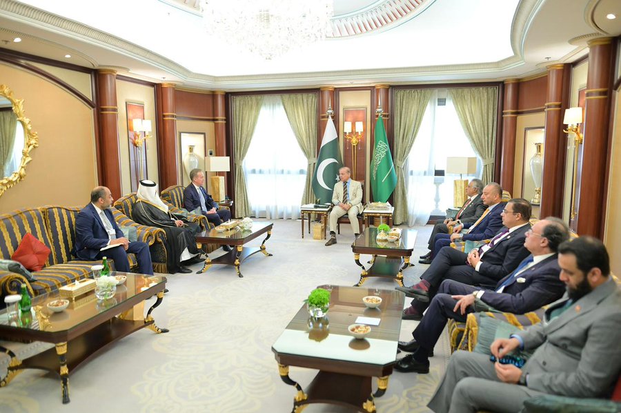 Prime Minister Shehbaz Sharif meets WEF President Børge Brende in Riyadh on sidelines of Future Investment Initiative