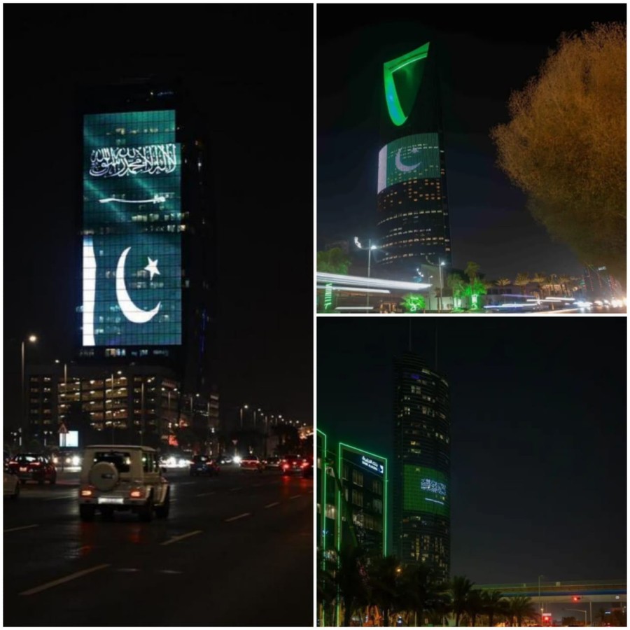RIYADH, Wednesday, September 17, 2025 (WNP): Iconic towers and landmarks across major Saudi cities were illuminated with the national flags of Saudi Arabia and Pakistan on Wednesday evening, celebrating the signing of the historic Pakistan–Saudi Arabia Strategic Mutual Defense Agreement.