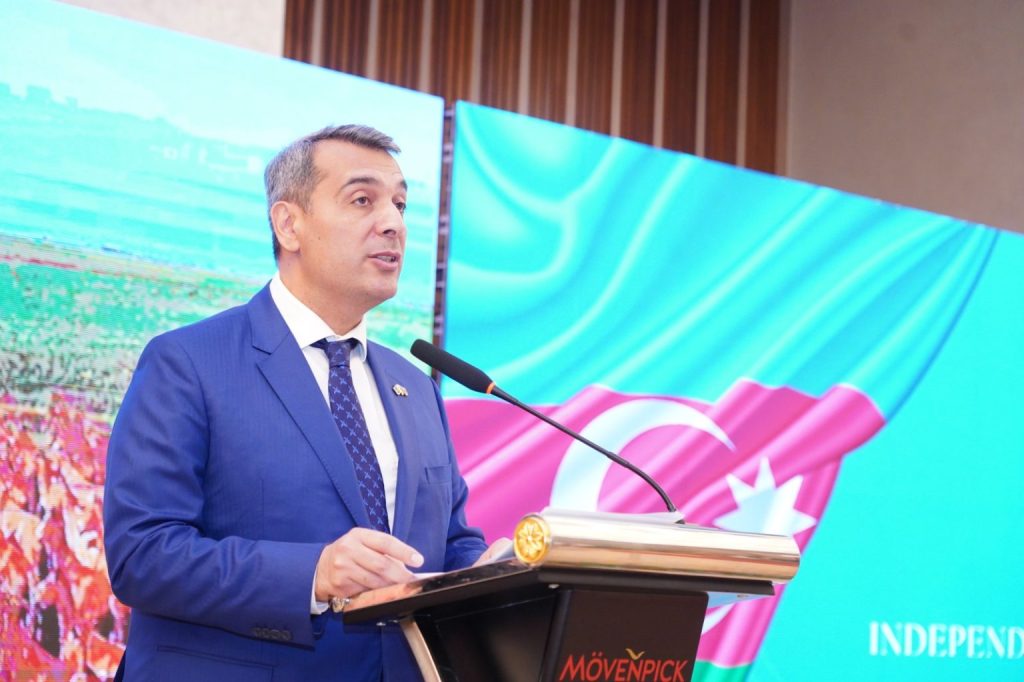 انہوں نے بتایا کہ موجودہ جمہوریہ آذربائیجان 1991 میں سوویت یونین کے انہدام کے بعد اپنی آزادی بحال کرنے میں کامیاب ہوئی، اور اس کا قانونی تسلسل 1918 کی جمہوری ریاست سے جڑتا ہے۔ انہوں نے آذربائیجان کے قومی رہنما مرحوم حیدر علییف کو ریاست کی خودمختاری کے تحفظ اور ترقی کی راہ پر گامزن رکھنے پر خراجِ تحسین پیش کیا۔
